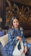 The Mia Thermopiles dress showcases a beautiful blue and white tie-dye technique. This delicate dress features a neck cutout and a layered silhouette with pleated skirt-like detailing. Style the layers to your liking, creating a unique and personalized look.